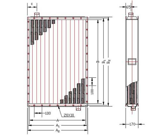 ①、②-分别为换热器长,宽尺寸分米化整